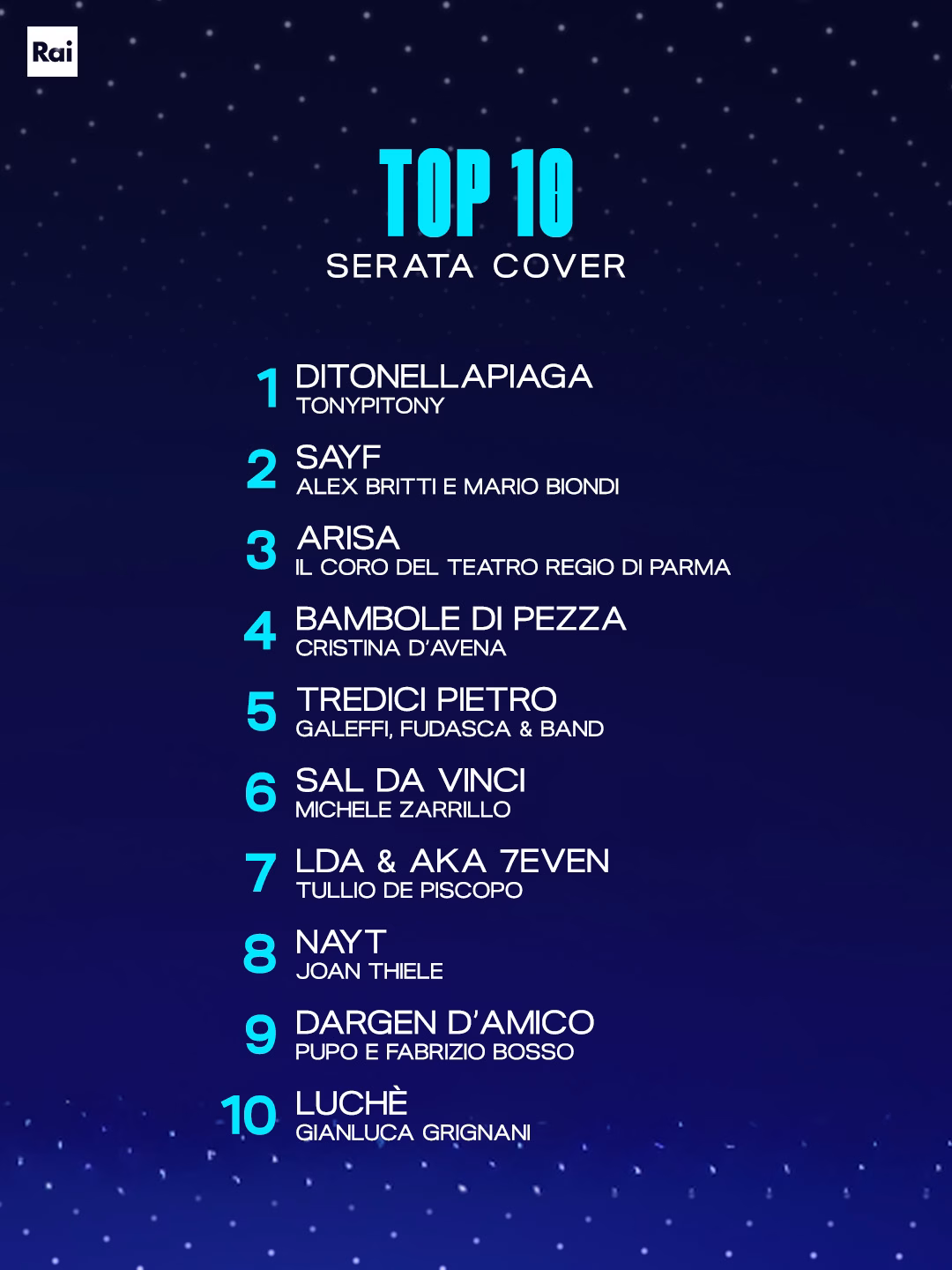La top 10 è decretata da Televoto (34%) Giuria Sala Stampa, Tv e Web (33%).